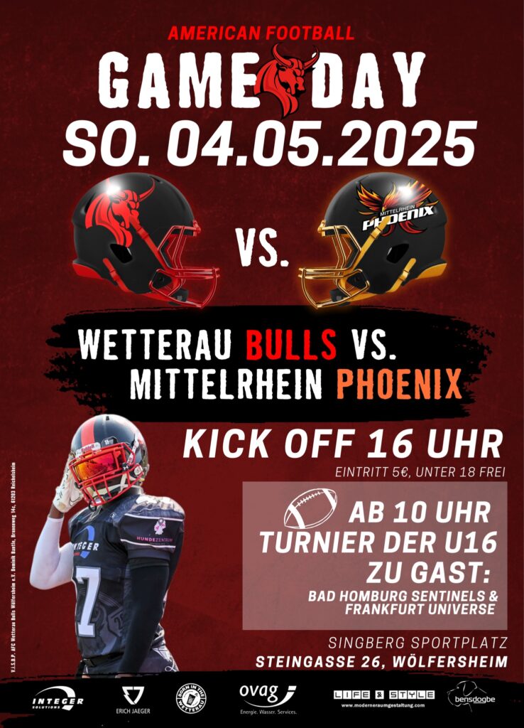 Kickoff ist um 10 Uhr gegen Frankfurt, von 11:30 an trifft Frankfurt auf Bad Homburg. Den U16 Spieltag beschließt das Duell Wetterau vs Bad Homburg. Der Eintritt ist hier frei!