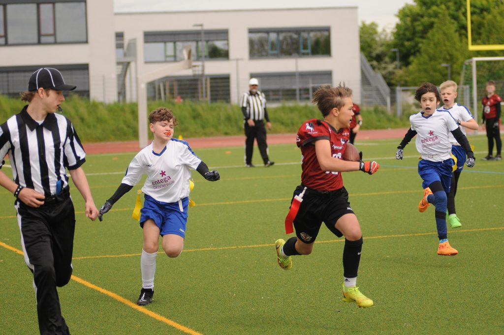 Beim U10 Spieltag der Flagliga waren die Bad Homburg Sentinels und die Kelkheim Lizzards zu Gast. Gegen beide Teams zeigte die U10 eine gute Leistung. Den ersten Touchdown der Bulls U10 Historie erzielte Florian Bittner. Gegen Kelkheim waren Tamo Leon Schnicker mit der Führung und Vin Frischknecht mit weiteren zwei Touchdowns und Extrapunkten erfolgreich. Am […]