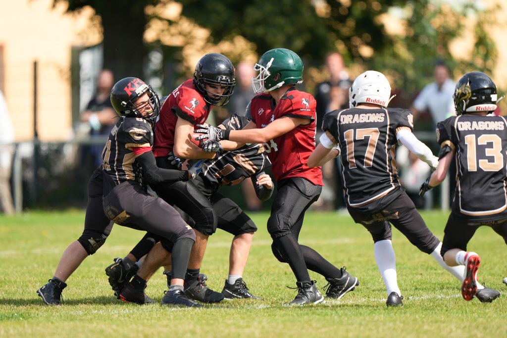 Die U19 der Wetterau Bulls traf am heutigen Sonntag auf das U19 Team der Marburg Mercenaries. Auf dem Nebenplatz des Georg Gassmann Stadions gestalteten die Bulls ein ausgeglichenes Spiel und hatten sogar Feldvorteile. Zur Halbzeit stand es 14:12. Die Touchdowns der Wetterau Bulls erzielten Deniz Agbulut und Joshua Schiel. Marc Zierau, verwandelte einen Zusatzversuch zur […]