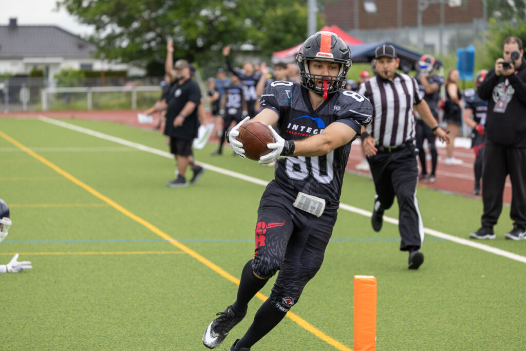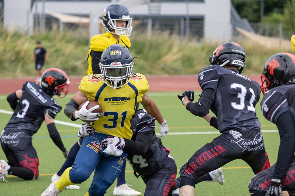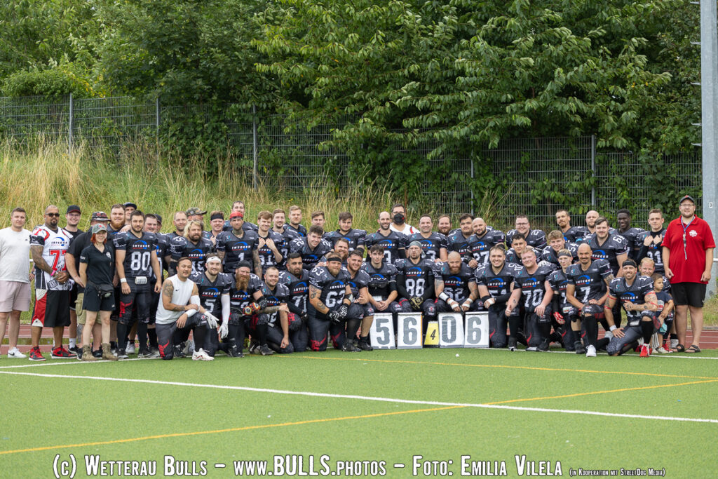 Mit dem zweihöchsten Sieg der Vereinsgeschichte beendeten die Wetterau Bulls ihr zweites Oberliga Spiel der Saison 2024 gegen die Hanau Hornets. Mit 56:6 gewannen die Wetterauer das Spiel vor 250 Zuschauern auf dem Singberg in Wölfersheim gegen die Brüder-Grimm Städter.