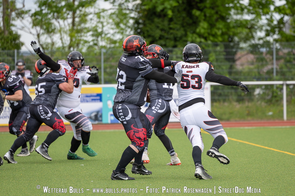 Mit dem Halbzeitpfiff verabschiedeten sich beide Teams beim Stand von 14:12 für die Wetterau Bulls in die Kabine.