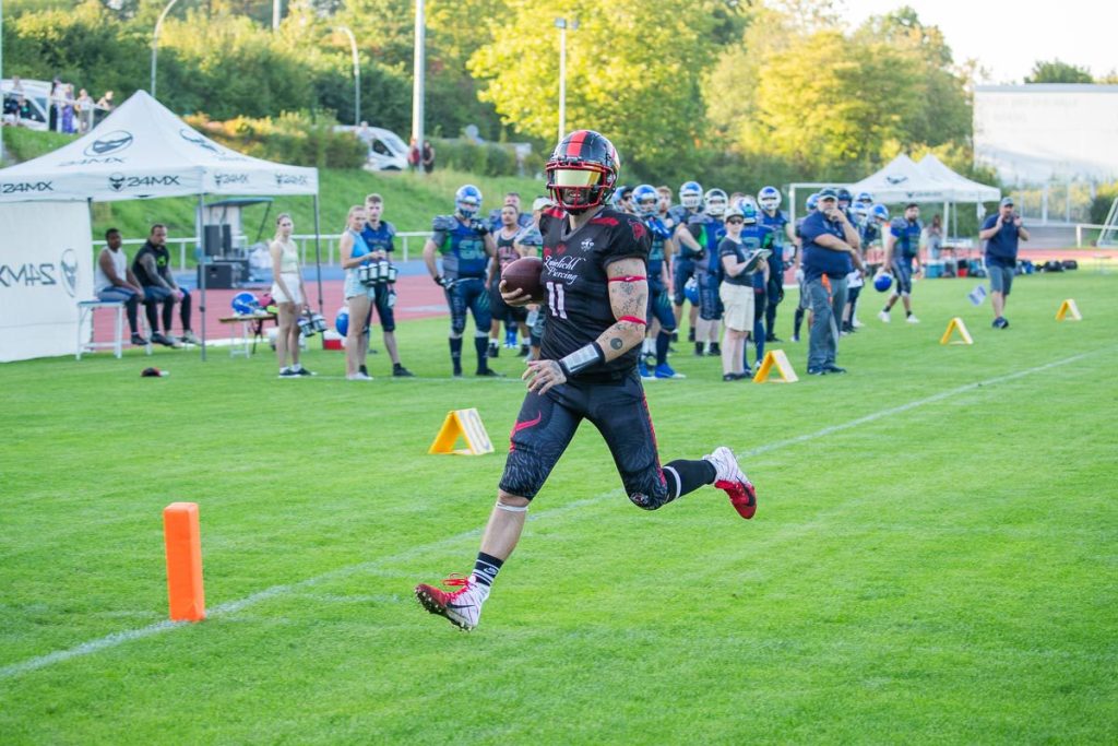 Die Defense der Bulls zeige sich gut aufgelegt und zwang St. Wendel zu einem „Three and Out“. Im folgenden Drive sollte es Lukas Klimek aber gelingen die ersten Punkte auf das Scoreboard zu bringen. 3:0 sollte der Zwischenstand lauten. Die letzte Aktion des ersten Viertels gehörte der Defense der Bulls. Nachdem Linebacker Jerome Dankowski den Ball abfangen wollte, ihn aber unter Behinderung des Receivers nicht ganz unter Kontrolle bekam , reagierte Alexander Meyer auf Seiten der bulls reaktionsschnell und sicherte den Ball aus der Luft, bevor er den Boden berührte. Mit einem 3:0 endete so das erste Viertel für die Bulls.