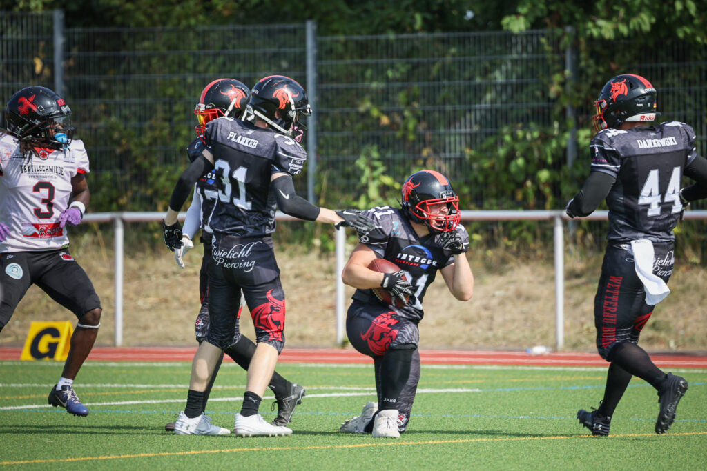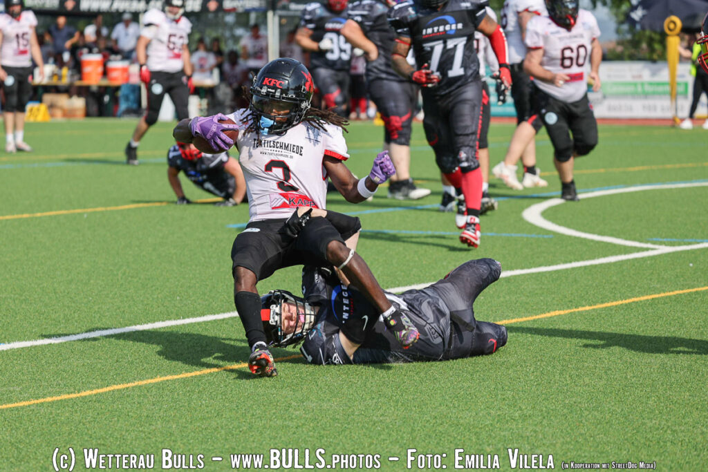 Bei hochsommerlichen Temperaturen um die 33 Grad auf dem Singbergkunstrasen in Wölfersheim traf das Team von Headcoach Mike Myers auf den bisher ungeschlagenen Spitzenreiter aus Fulda. Als bisher ungeschlagener Aufsteiger aus der Landesliga verloren die Bulls gegen die Saints überraschend deutlich mit 5:50 und mussten so die erste Niederlage hinnehmen.