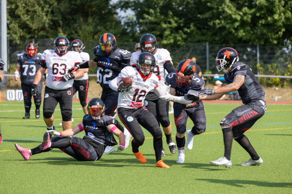 Unter großem Jubel fing anschließend Tim Hudaff, Safety der Bulls, im ersten Drive direkt den ersten langen Pass auf den amerikanischen Importspieler der Saints ab und sicherte sich und seinem Team den Ball.